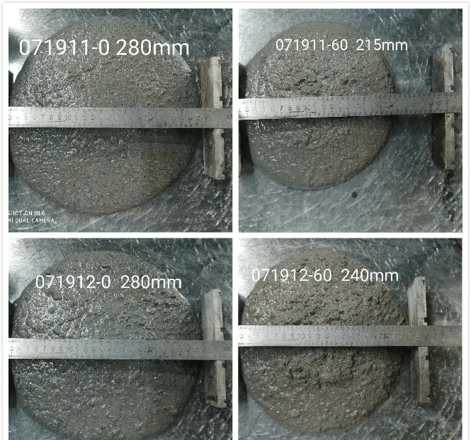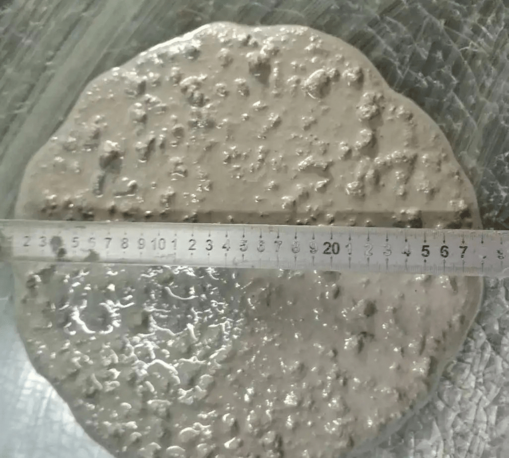 3. The presence of too many needle-like stones significantly increases friction, thereby affecting the concrete’s flow performance. This factor is so influential that it directly impacts the flow rate of the concrete made with more needle-like stones under the same mix ratio.